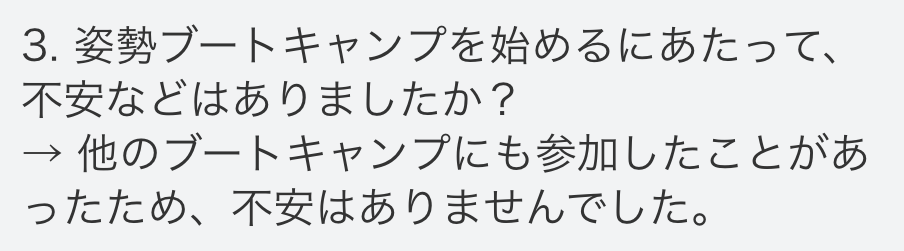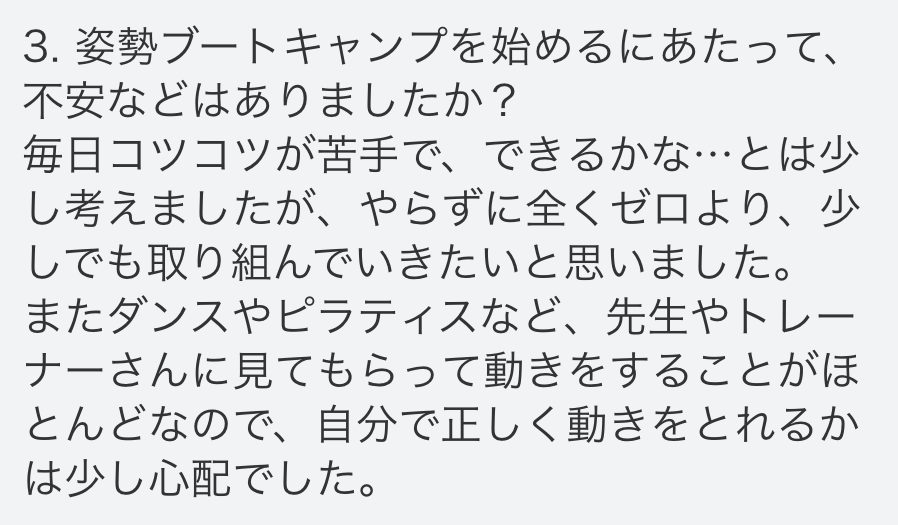③姿勢ブートキャンプを始めるにあたって、不安などはありましたか?