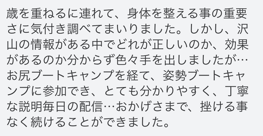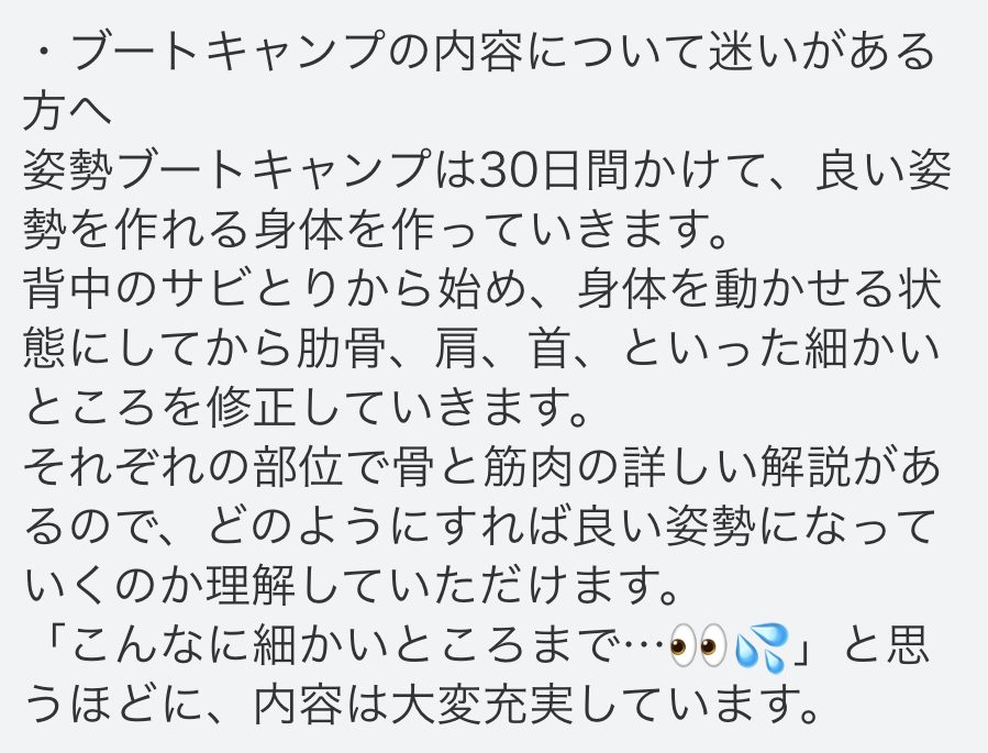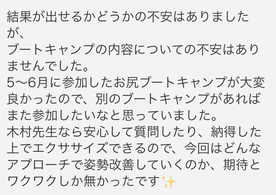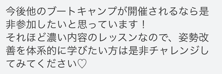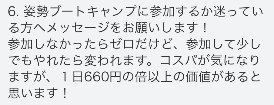 ⑥姿勢ブートキャンプに参加するか迷っている方へメッセージをお願いします!