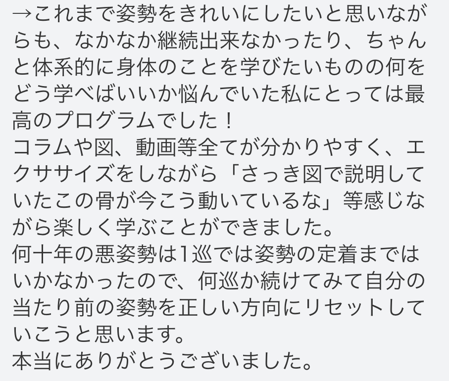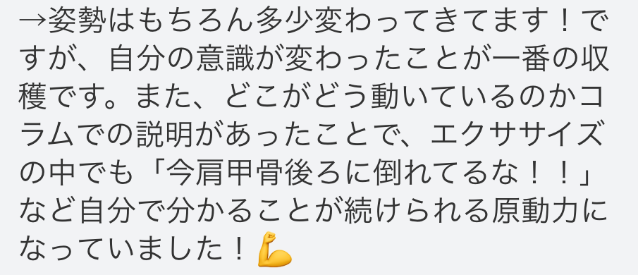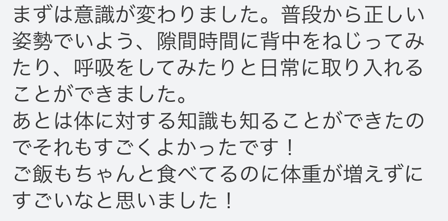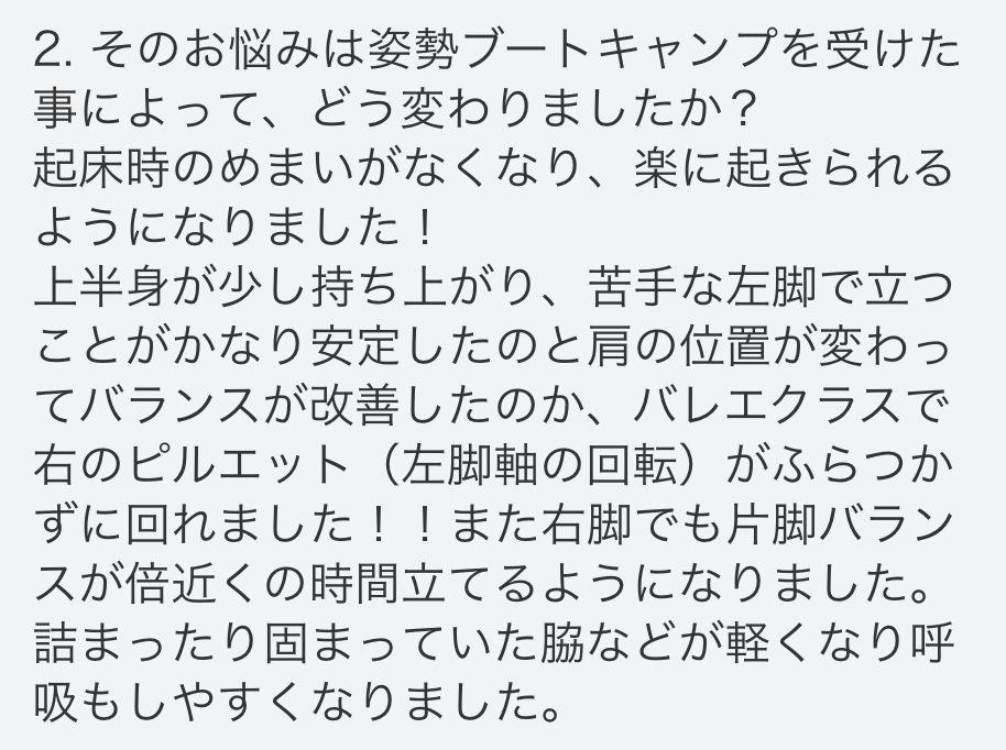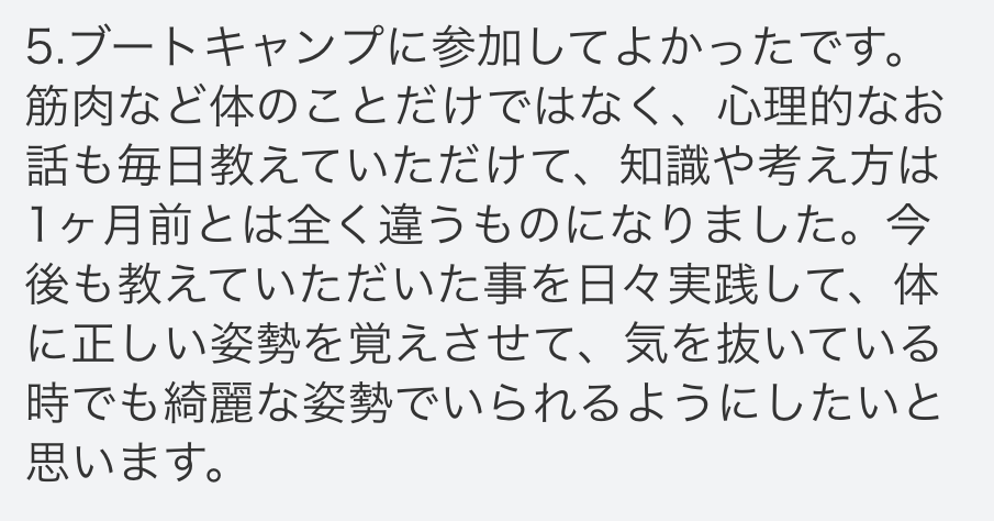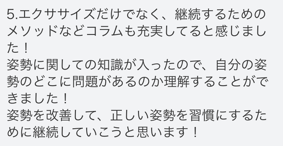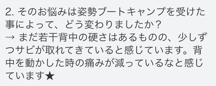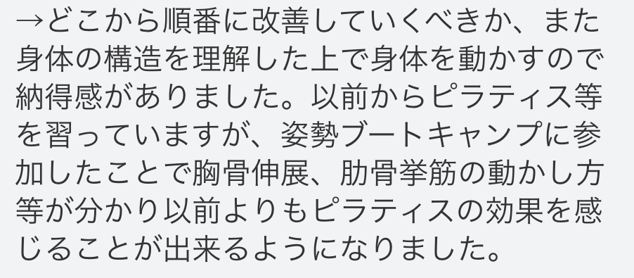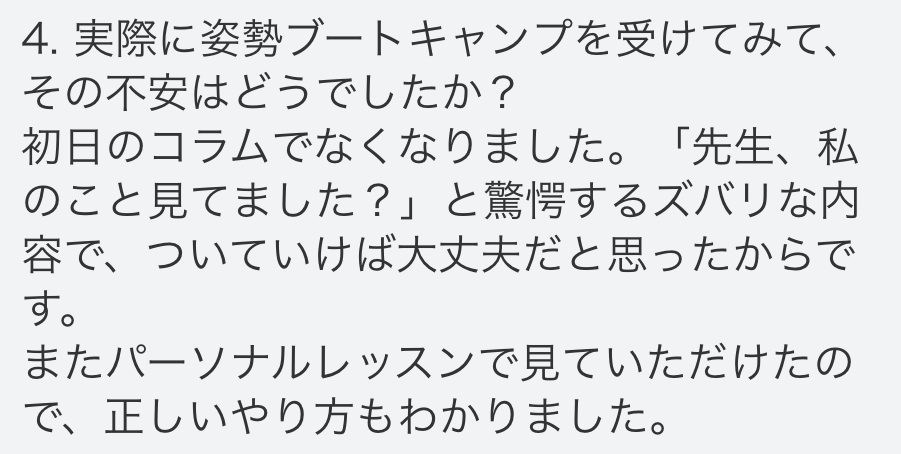 ⑤姿勢ブートキャンプを受けてみての率直な感想をお願いします!